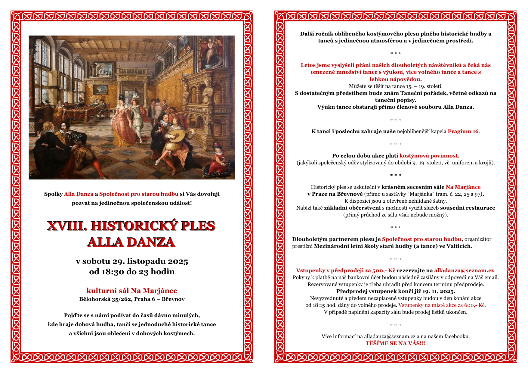 | So | 29. 11. | 18:30–23:00 | Historický ples ALLA DANZA | Více informací... |
